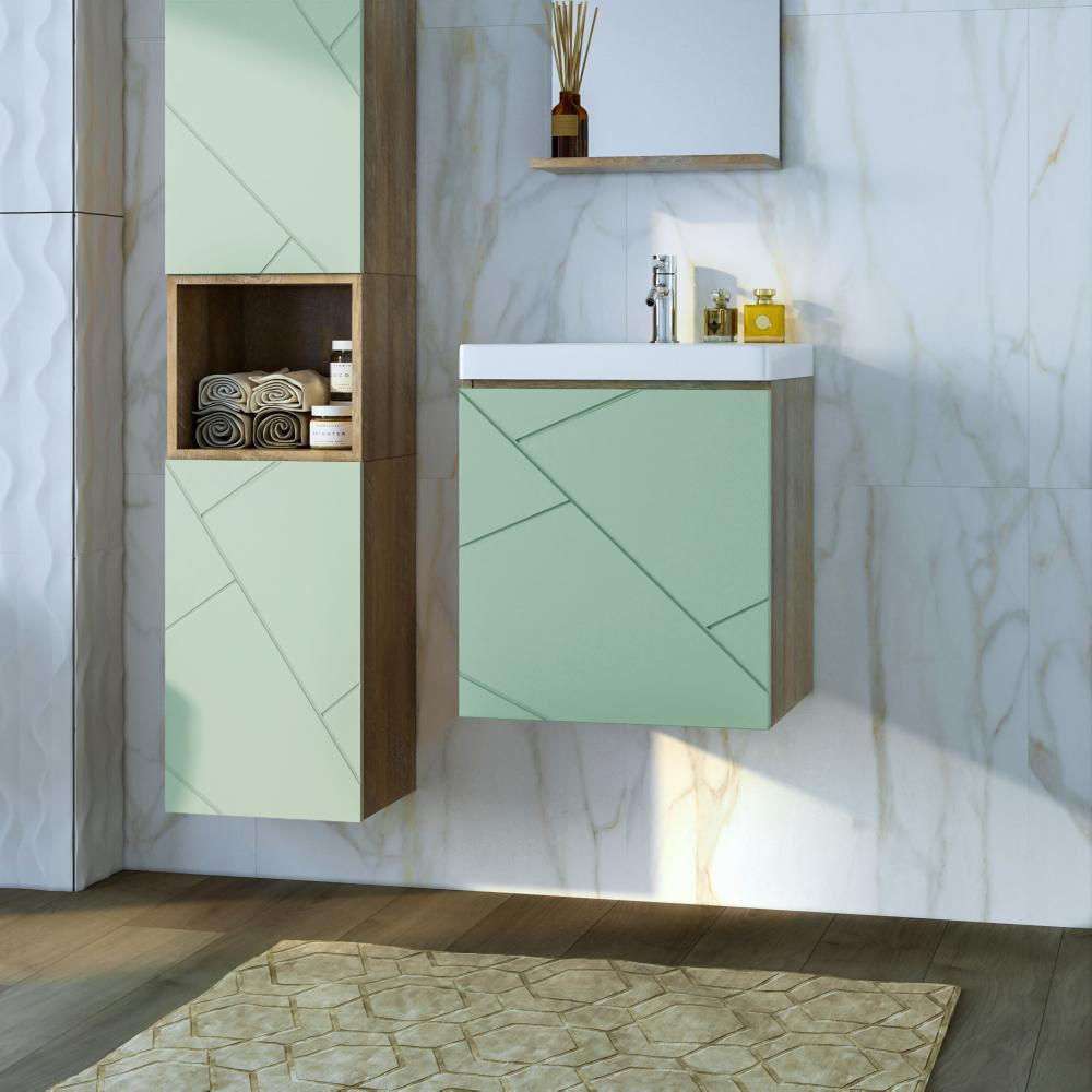 Тумба под раковину подвесная Бриклаер КРИСТАЛЛ фисташковый, 50 см