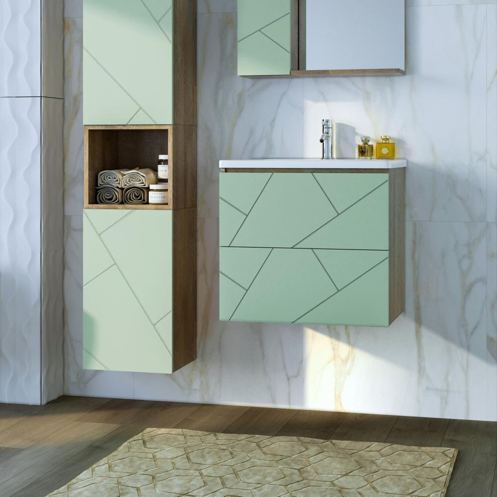 Тумба под раковину подвесная Бриклаер КРИСТАЛЛ фисташковый, 60 см