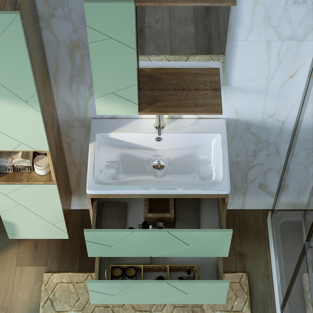 Тумба под раковину подвесная Бриклаер КРИСТАЛЛ фисташковый, 70 см