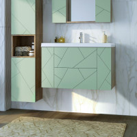 Тумба под раковину подвесная Бриклаер КРИСТАЛЛ фисташковый, 90 см
