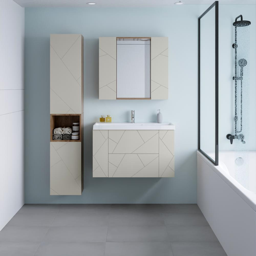 Тумба под раковину подвесная Бриклаер КРИСТАЛЛ латте, 90 см
