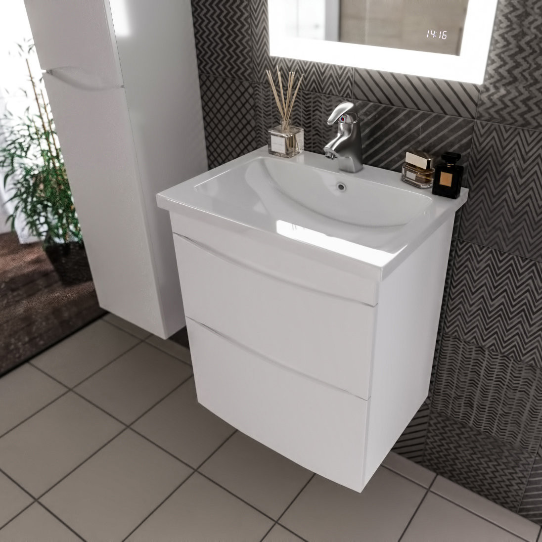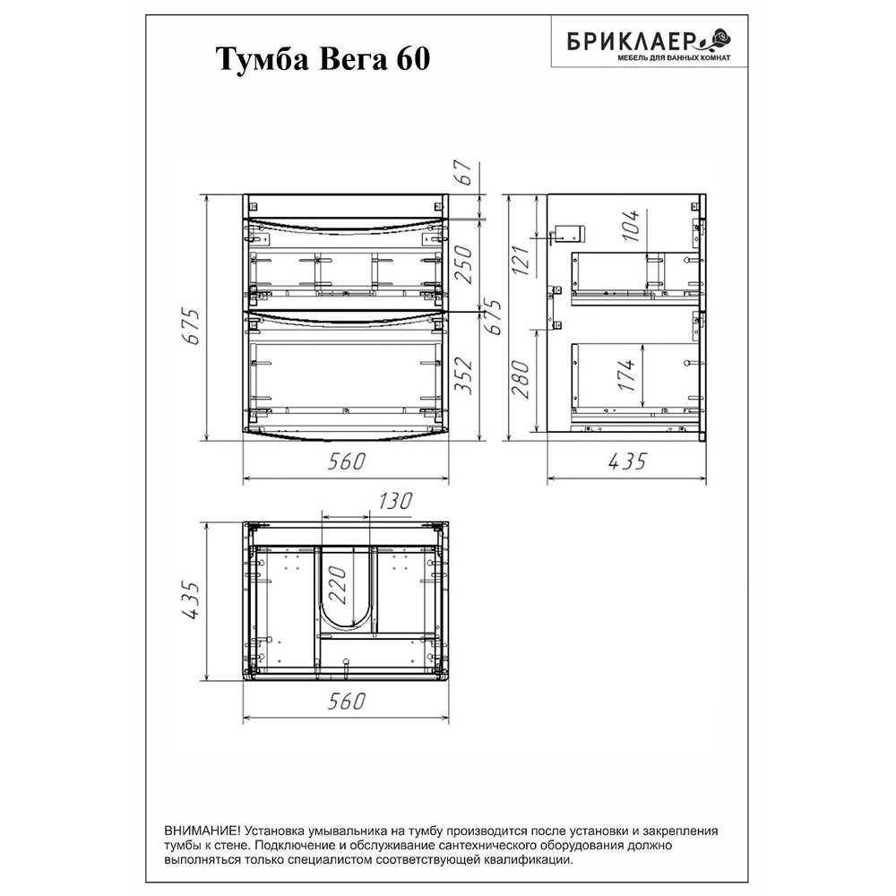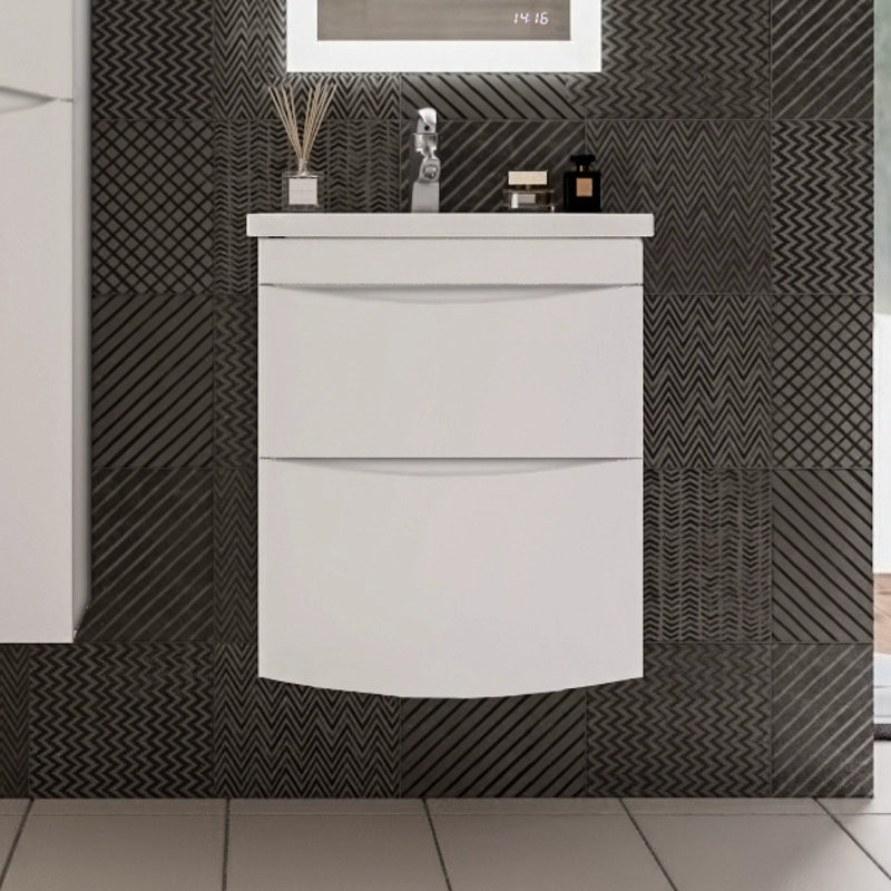 Тумба под раковину подвесная Бриклаер ВЕГА белый с двумя ящиками, 60 см