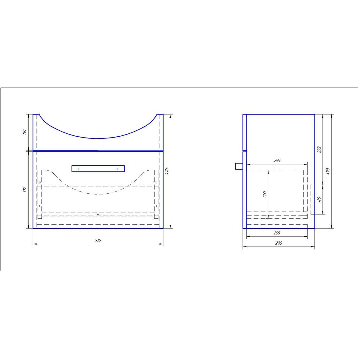 Тумба под раковину подвесная Dreja Alfa 55 см, белый. Фурнитура: Hettich. Компоновка: 1 ящик. Монтаж: подвесной.