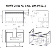 Тумба под раковину подвесная Dreja Grace 70 см, белый. Фурнитура: Hettich. Компоновка: 1 ящик. Дополнительные функции: встроенный органайзер. Монтаж: подвесной.