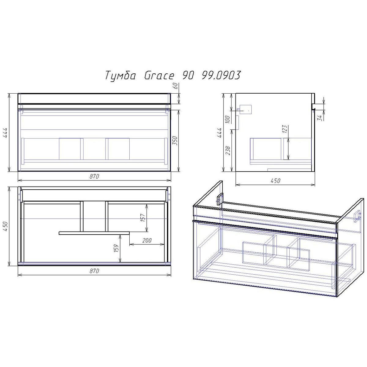 Тумба под раковину подвесная Dreja Grace 90 см, белый