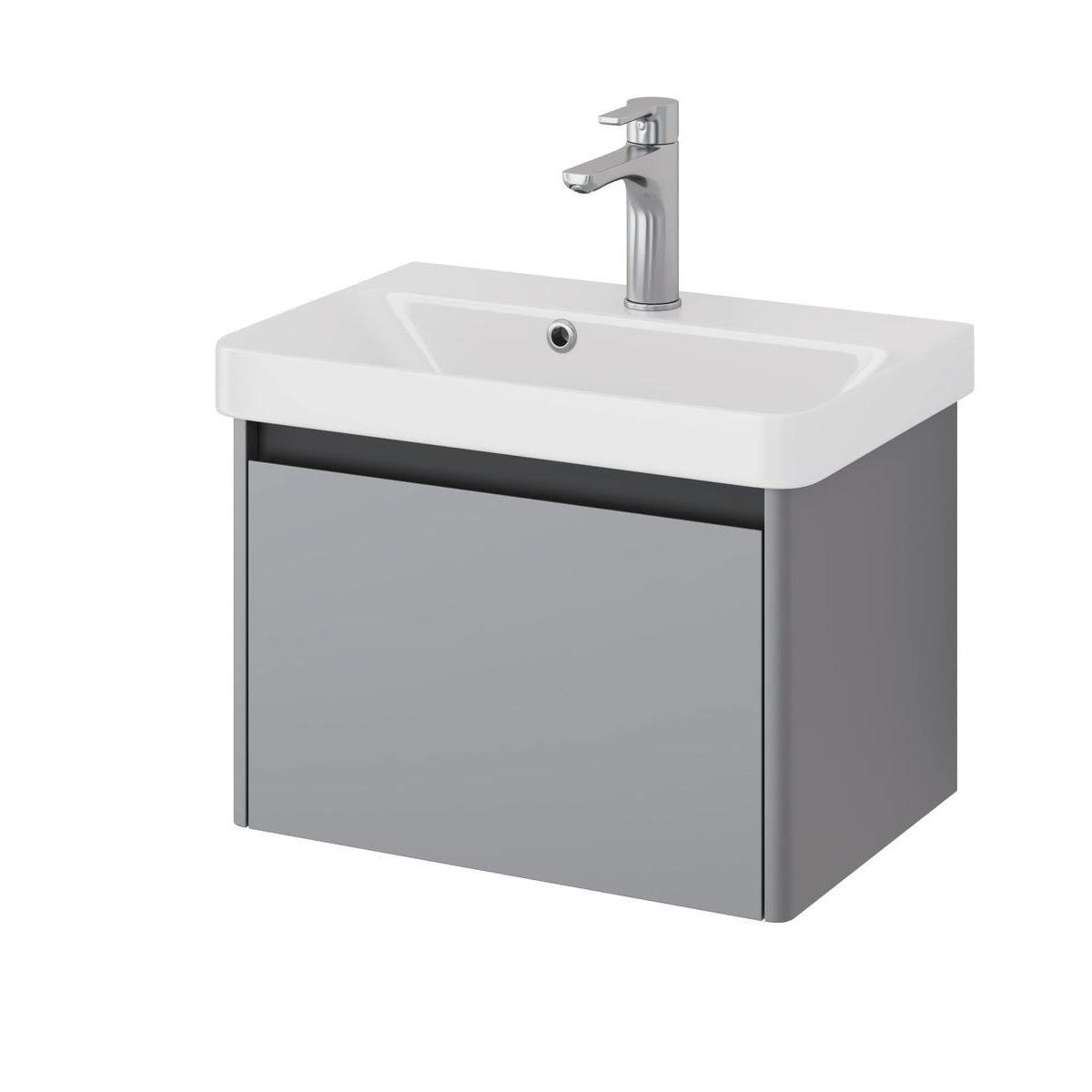 Тумба под раковину подвесная Dreja Luxury 55 см, серый базальт. Фурнитура: Boyard. Компоновка: 1 ящик. Монтаж: подвесной.