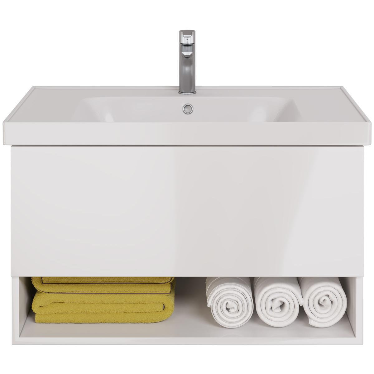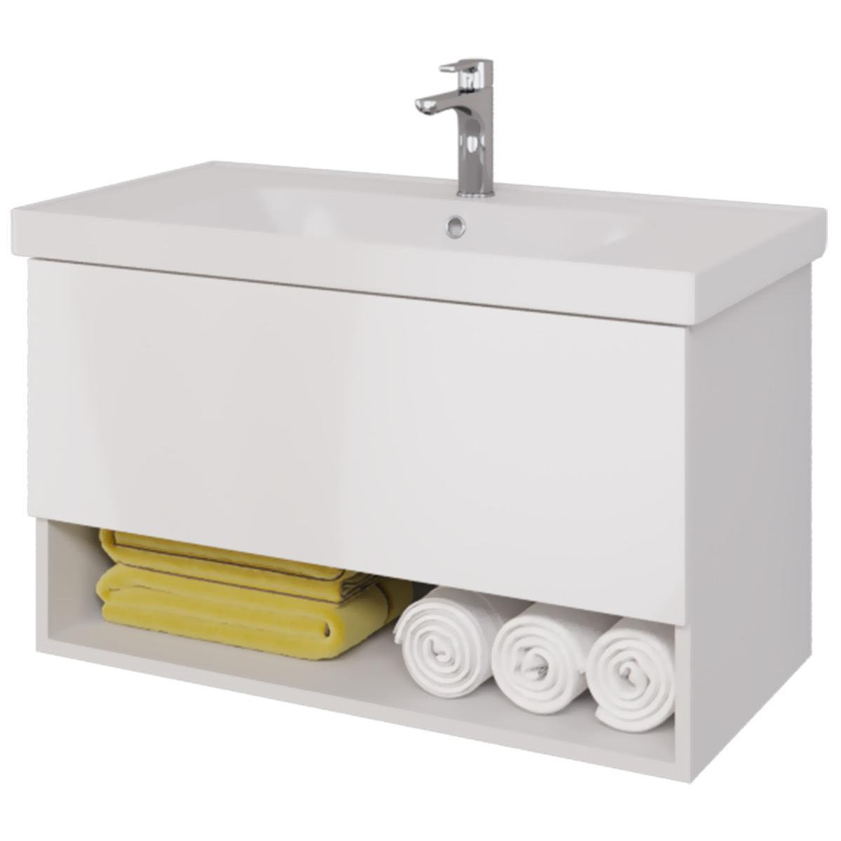 Тумба под раковину подвесная Dreja Perfecto 90 см, белый. Фурнитура: Hettich. Компоновка: 1 ящик. Дополнительные функции: встроенный органайзер в верхнем ящике, механизм открывания push-to-open. Монтаж: подвесной.