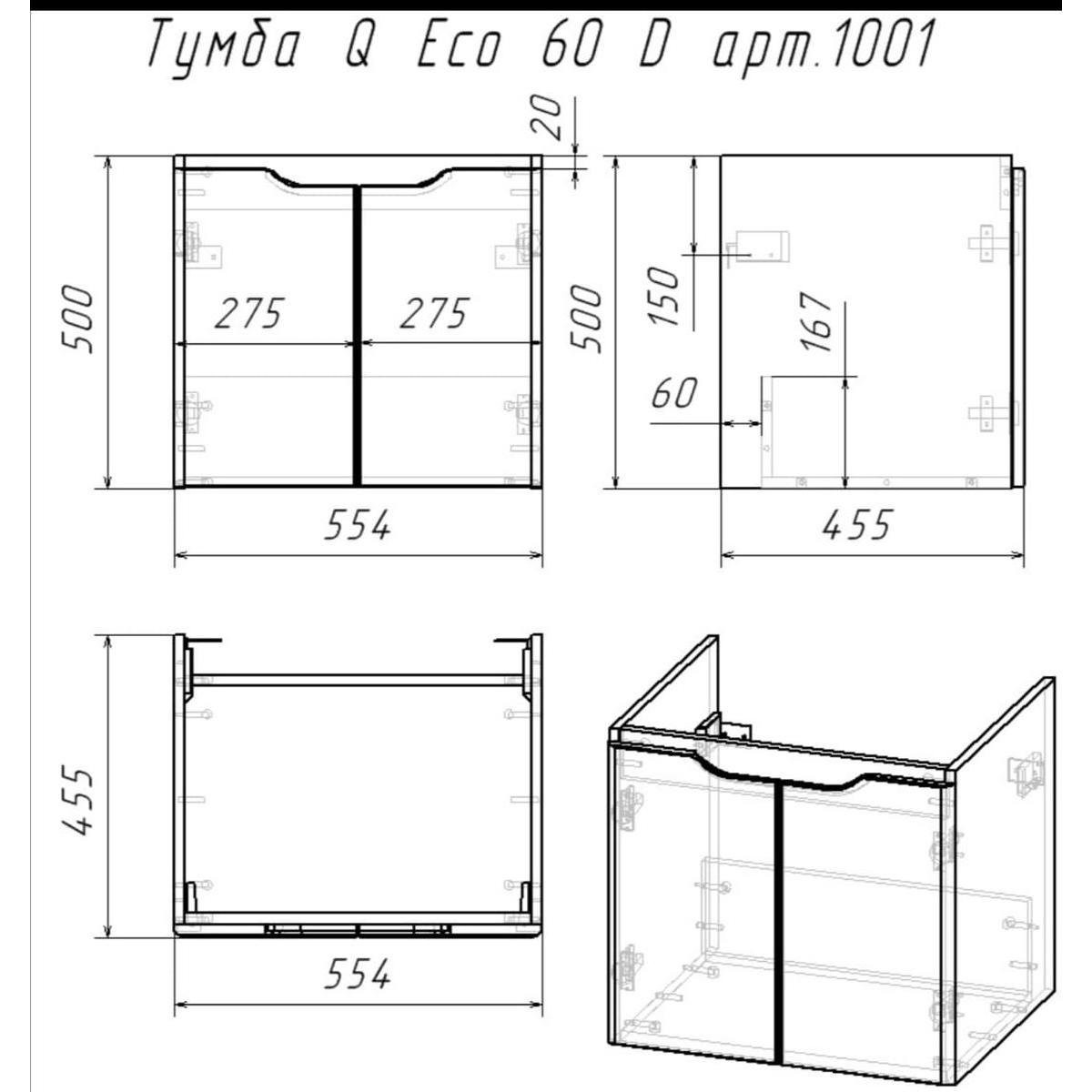 Тумба под раковину подвесная Dreja Q(D) 60 см, белый. Фурнитура: Hettich. Компоновка: 2 дверцы, 1 полка. Монтаж: подвесной.
