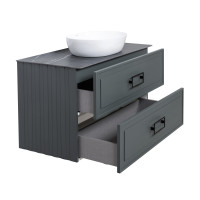 Подвесная тумба La Fenice Cubo TWIN FNC-01-CUB-G-100-2 обладает рядом неоспоримых преимуществ. Тумбу можно оснастить встраиваемой раковиной (арт.CU.NN.100), либо же приобрести столешницу в подходящем цветовом решении (арт. FNC-03-PL01-100, FNC-03-VS03-100) и установить на неё раковину-чашу. К данной тумбе необходимо выбрать белые или черные ручки, которые включены в стоимость тумбы (FNC-04-CUB-B-80 - белые; FNC-04-CUB-N-80 - черные). За счет входящего в комплект сифона Prevex, тумба обладает полноценными ящиками для хранения (без выреза). Ящики выполнены в фантазийной цветовой гамме "Лён антрацит". Тумба оснащена скрытыми доводчиками плавного закрывания частичного выдвижения Samet (Турция) и подвесным регулируемым механизмом Camar (Италия). Фасад и корпус тумбы покрыты краской и матовым лаком, что является надёжной защитой от влаги. Прекрасным и функциональным дополнением к тумбе станет пенал La Fenice Cubo серо-зеленого цвета FNC-05-CUB-G-30