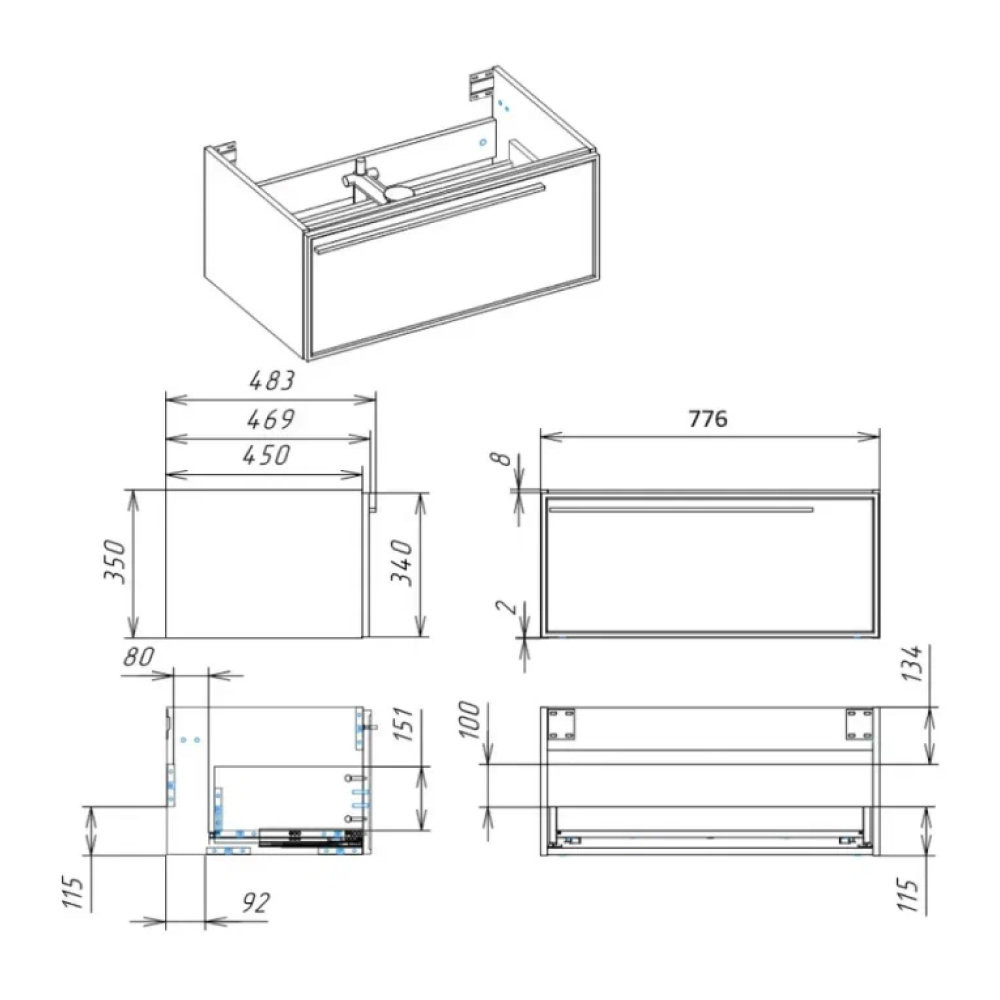 Комплектация: Тумба, ручка, сифон, набор для монтажа ( монтажная планка, дюбеля, саморезы);
