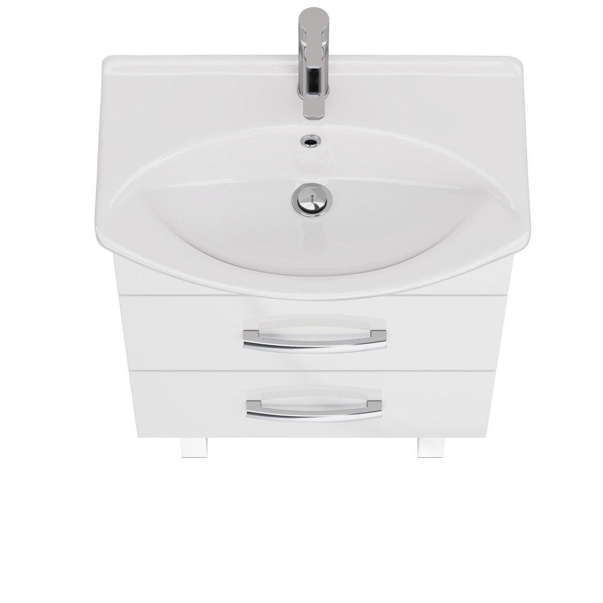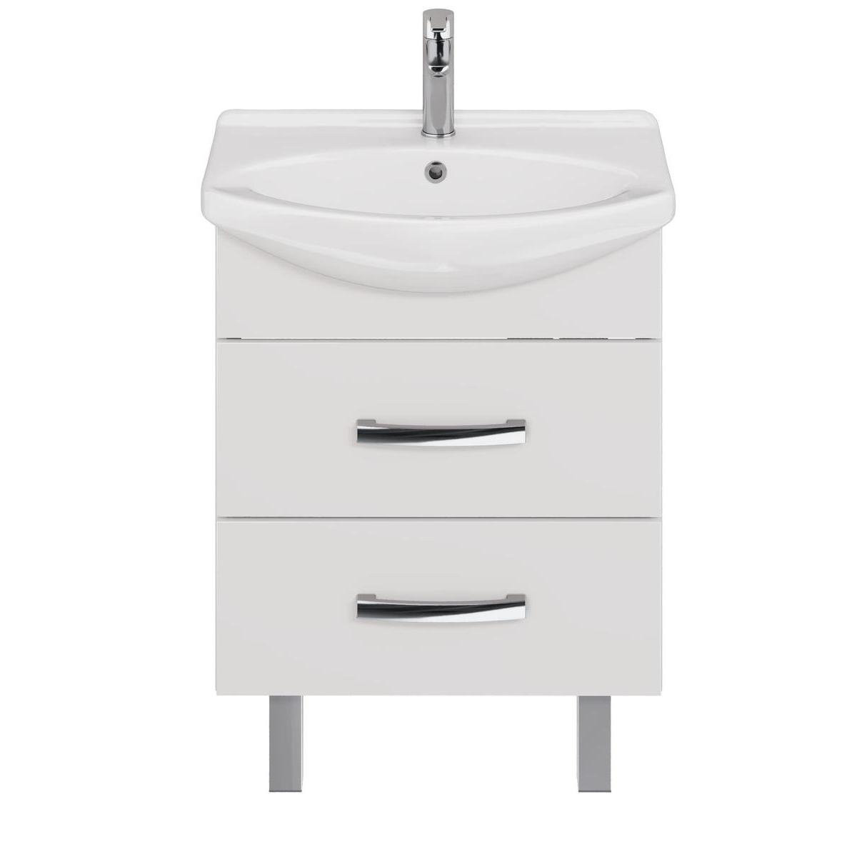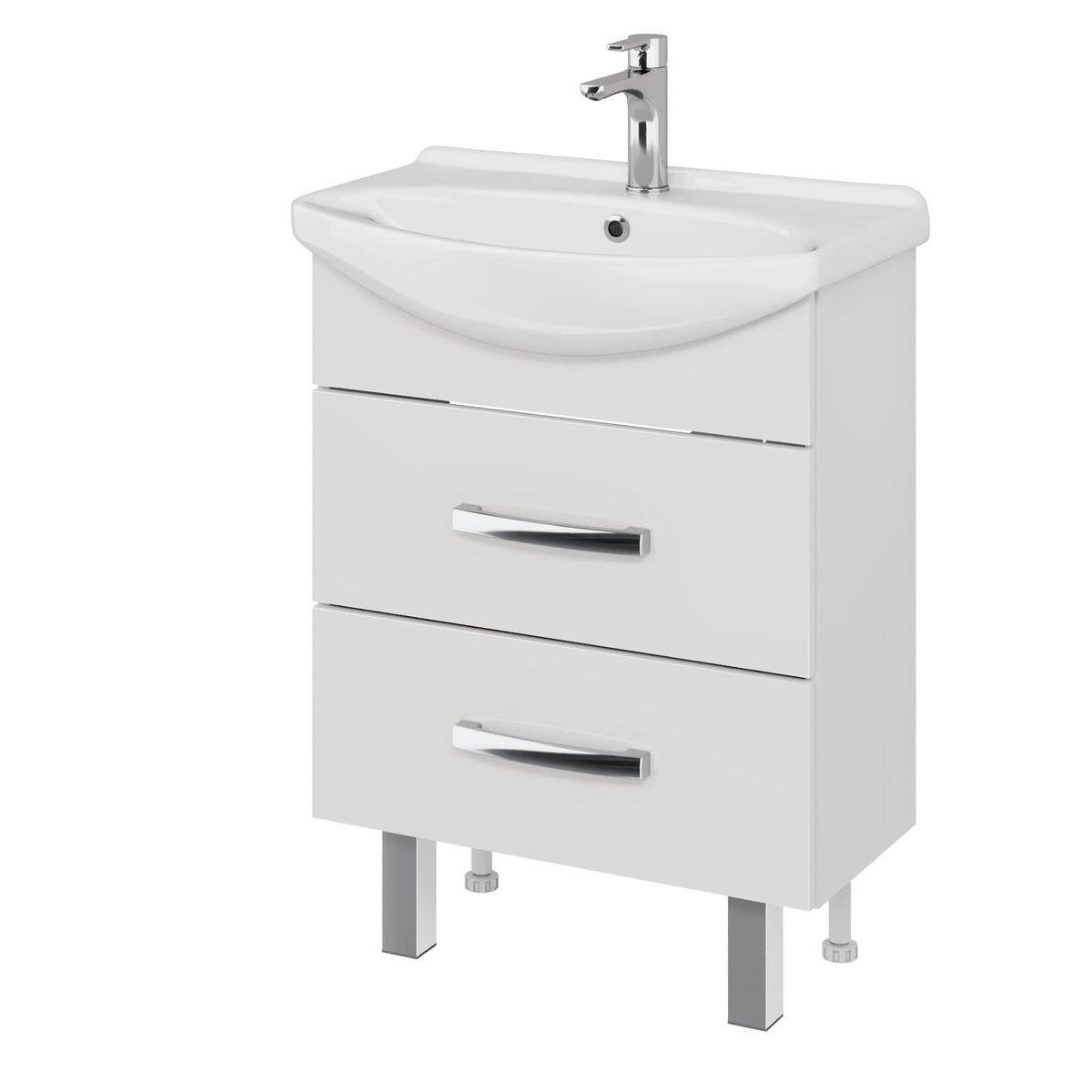 Тумба под раковину подвесная/напольная Dreja Alda 65 см, белый. Фурнитура: Hettich. Компоновка: 2 ящика. Монтаж: подвесной/напольный. Возможен напольный монтаж - необходимо отдельно приобрести ножки Dreja арт.: 99.9811.