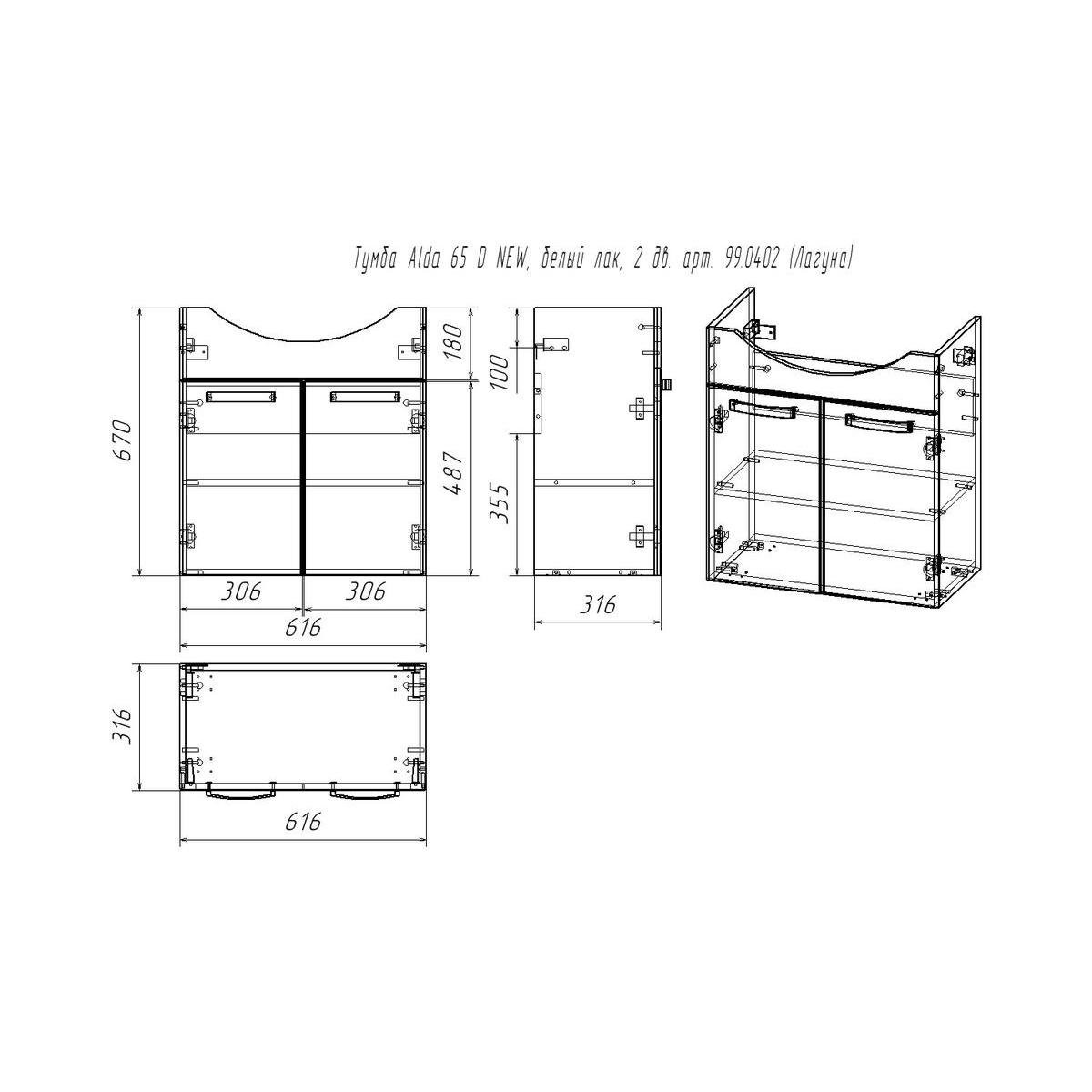 Тумба под раковину подвесная/напольная Dreja Alda D 65 см, белый. Фурнитура: Hettich. Компоновка: 2 дверцы. Монтаж: подвесной/напольный. Возможен напольный монтаж - необходимо отдельно приобрести ножки Dreja арт.: 99.9811.