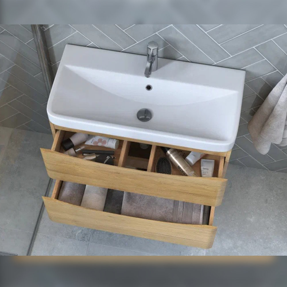 Тумба под раковину подвесная Velvex Clay tp.CLA.9595.80.2Y дуб верона, 80 см: 2 выдвижных ящика с механизмом плавного закрывания.