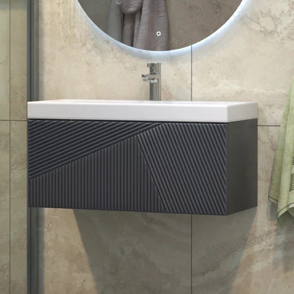 Тумба под раковину подвесная Velvex Edge tp.EDG.9696.80.1Y графит, 80 см: 1 выдвижной ящик с механизмом открывания push-to-open.