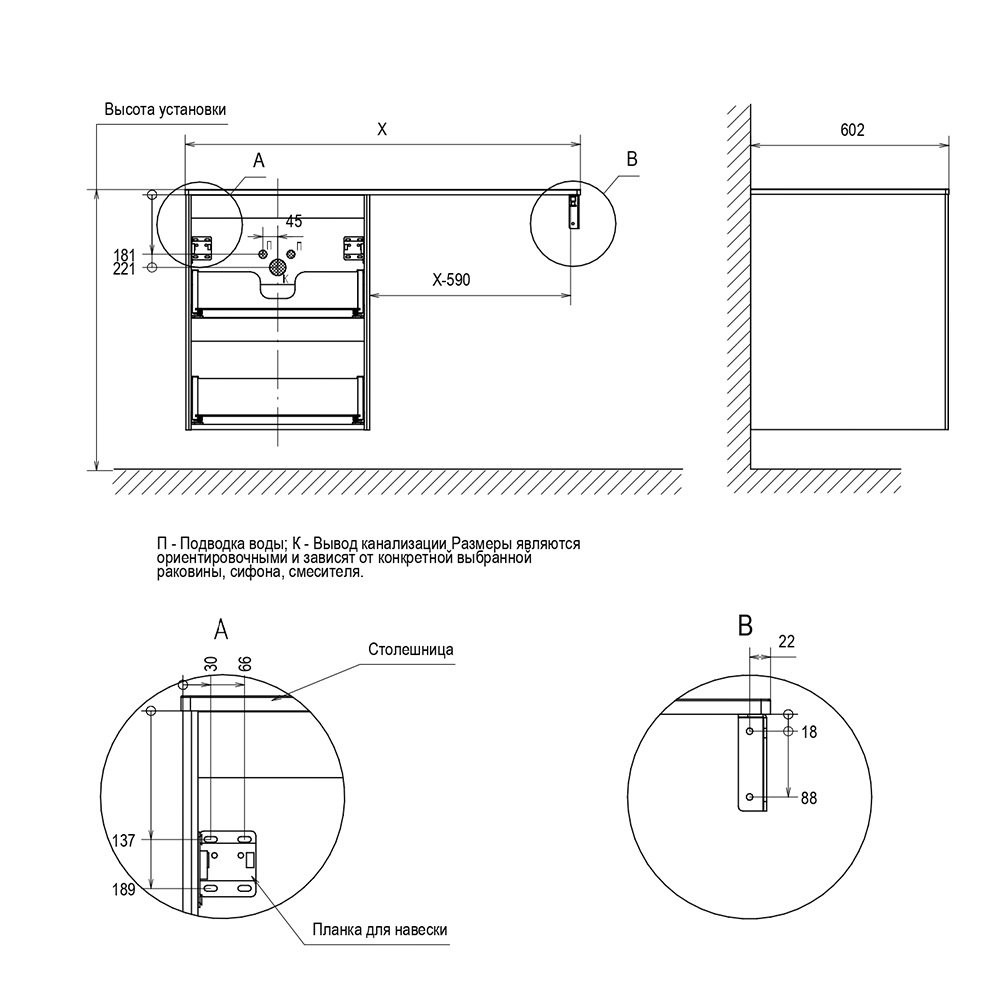 Комплектация: тумба, комплект крепежа для крепления к стене;