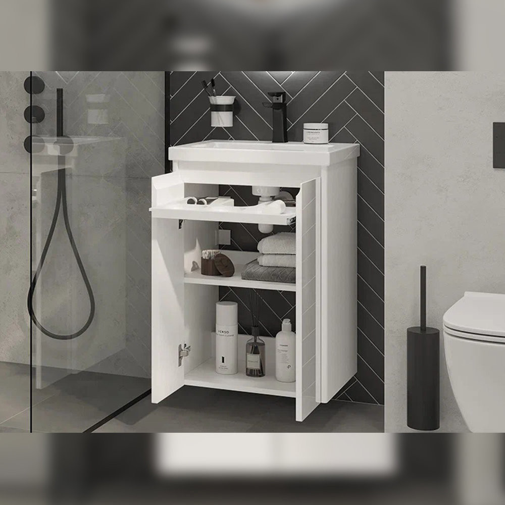 Тумба под раковину подвесная Velvex Klaufs tp.KLA.COM.50.2D, 50 см: 2 распашные дверцы,1 полка, выдвижной органайзер.