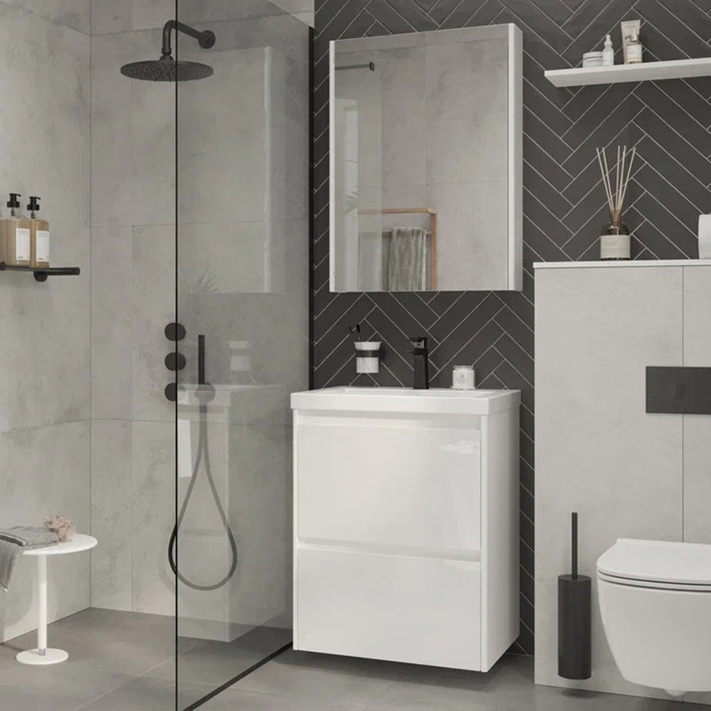 Тумба под раковину подвесная Velvex Klaufs tp.KLA.COM.60.2Y, 60 см: 2 выдвижных ящика, выдвижной органайзер.