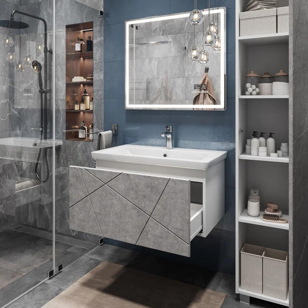 Тумба под раковину подвесная VIGO Geometry 035 бетон, 80 см. Гарантийный срок 2 года. Монтаж: подвесной. Доводчик: нет. Нажимной механизм: да.
