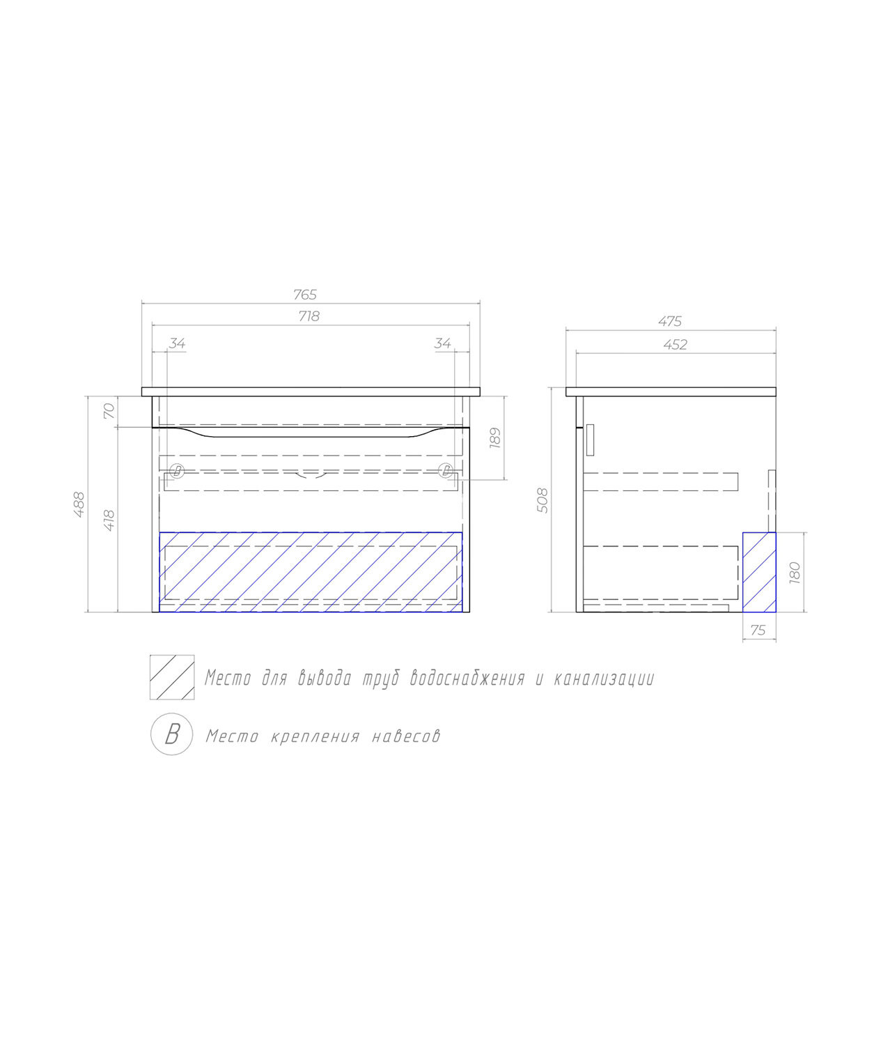 Тумба под раковину подвесная VIGO Grani tp.GRI.OSK.75.1Y дуб сонома, 75 см