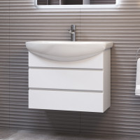 2 ящика. Специальный сифон Vigo в комплекте. Материал корпуса и фасада: влагостойкая ЛДСП Ящики: направляющие полного выдвижения Отсутствие лицевой фурнитуры – интегрированная в фасад ручка