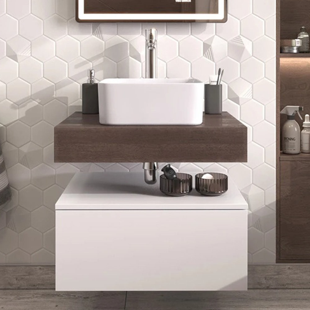 Тумба подвесная без столешницы Velvex Unit tp.UNI.50.1Y белый глянец, 50 см: 1 выдвижной ящик со стеклянными разделителями.