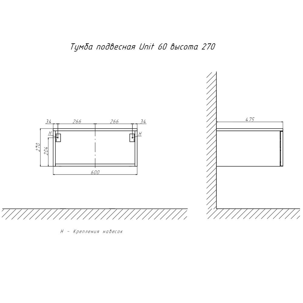 Тумба подвесная без столешницы Velvex Unit tp.UNI.60.1Y белый матовый, 60 см