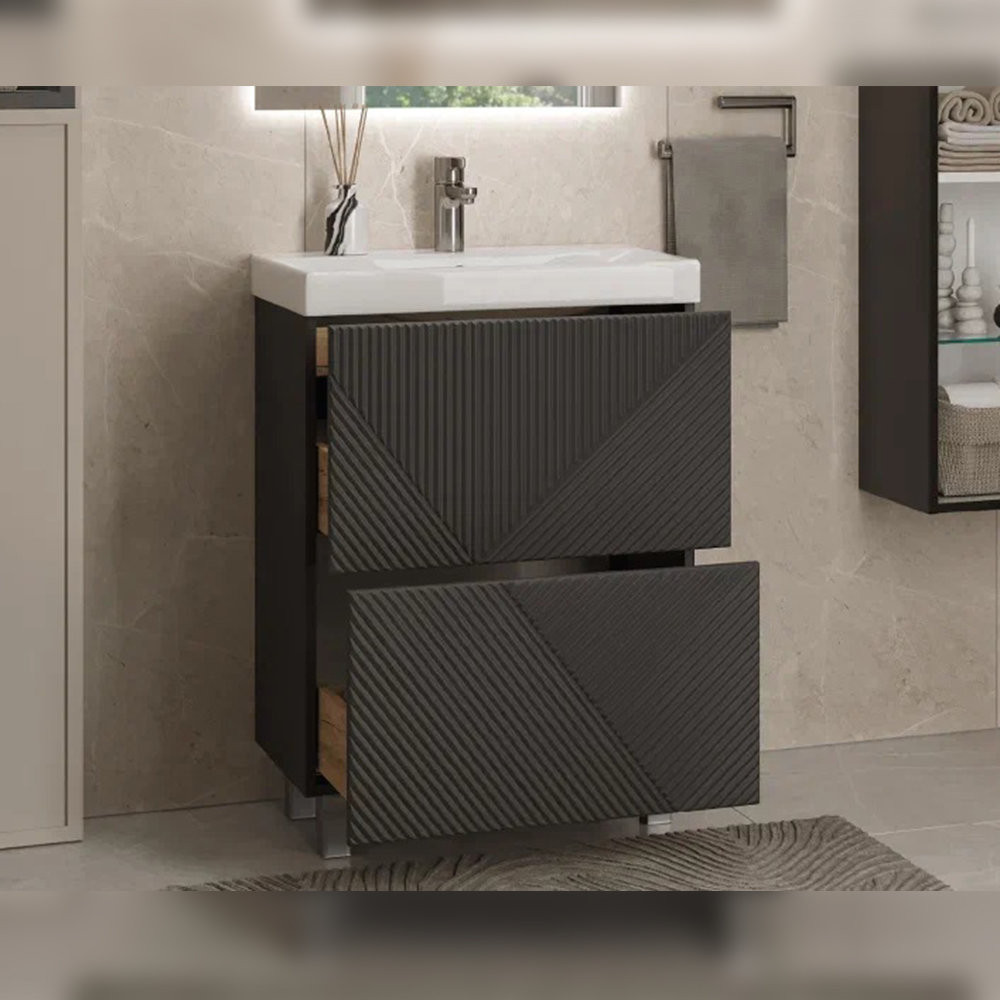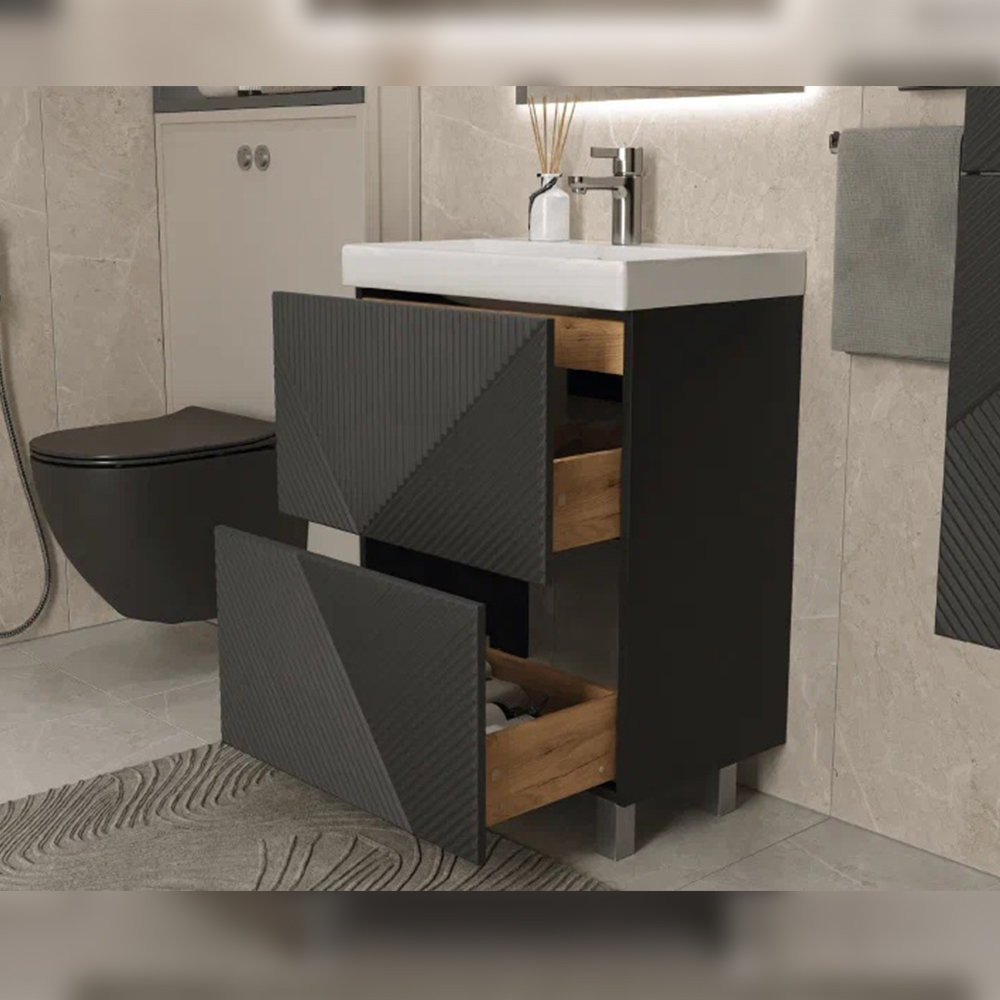 Тумба с раковиной напольная Velvex Edge tn.EDG.9696.60.2Y графит, 60 см: 2 выдвижных ящика с механизмом открывания push-to-open. Раковина в комплекте.