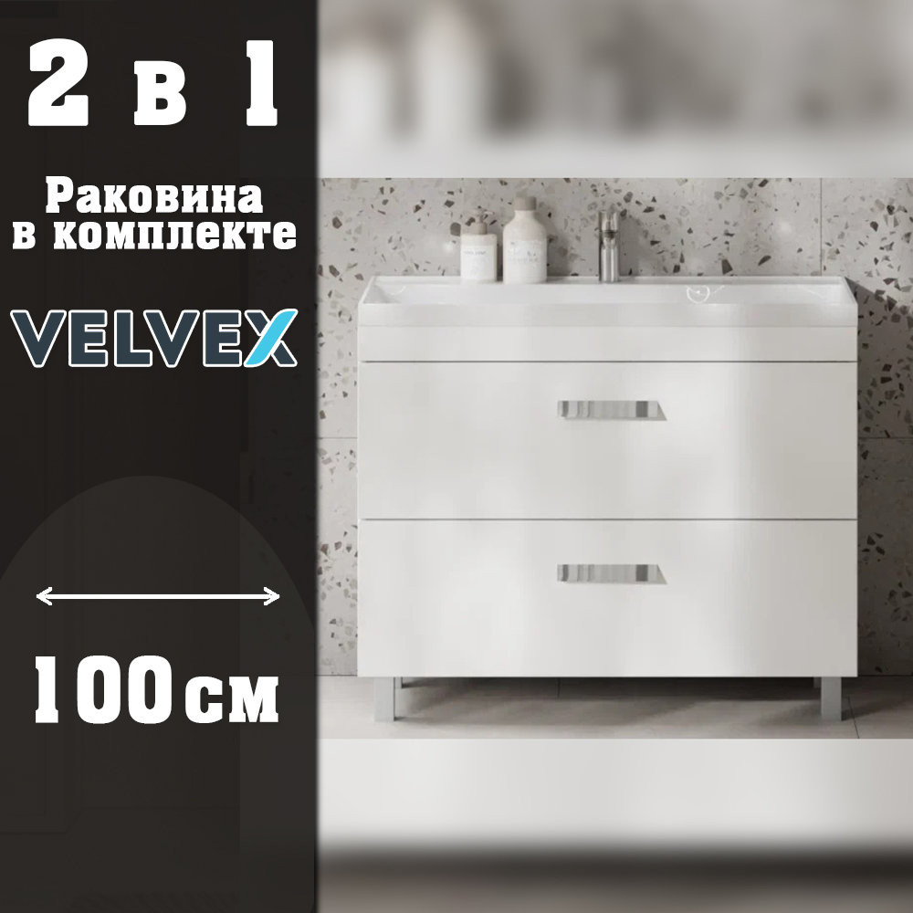 Тумба с раковиной напольная Velvex Orlando tn.ORL.CLA.100.2Y белый матовый, 100 см