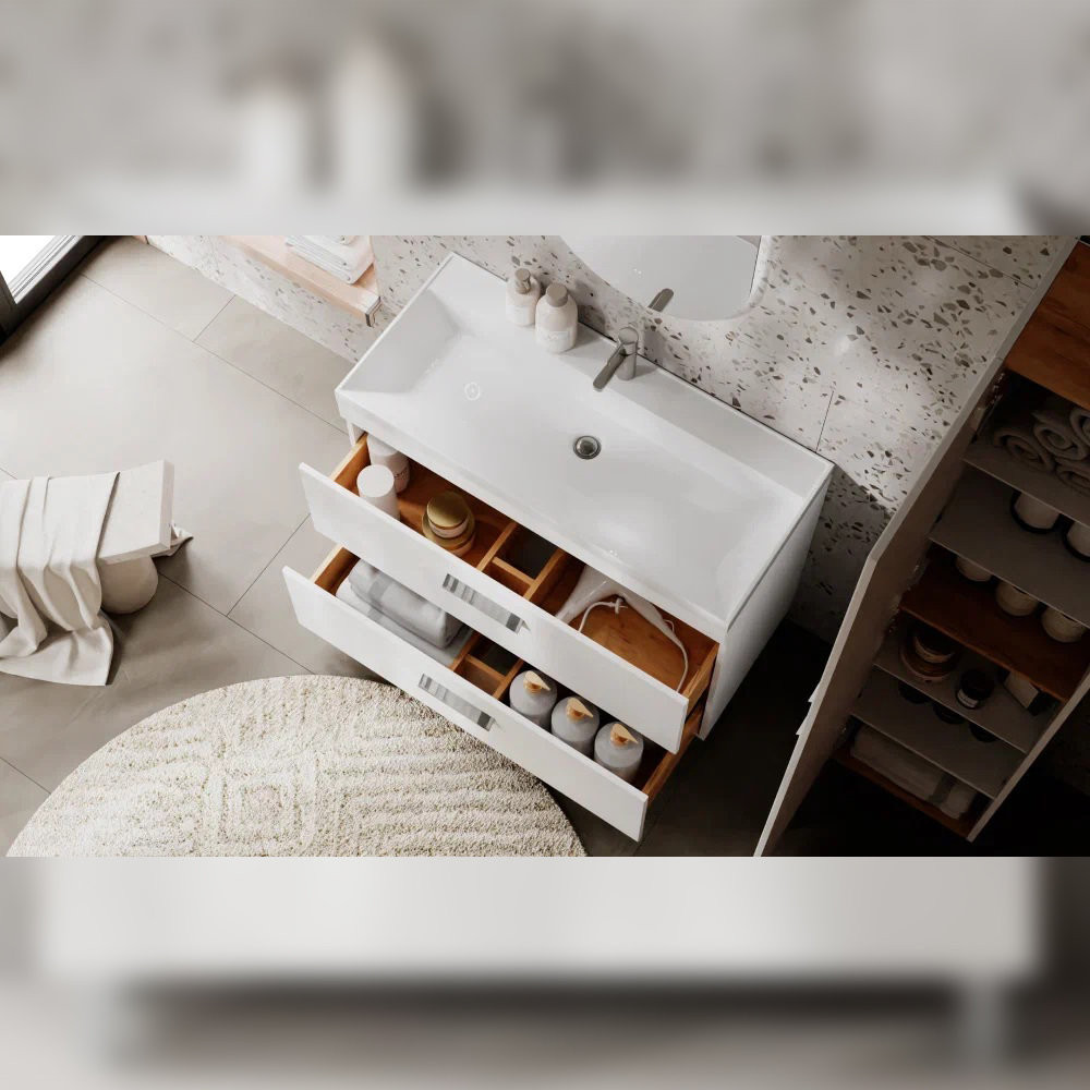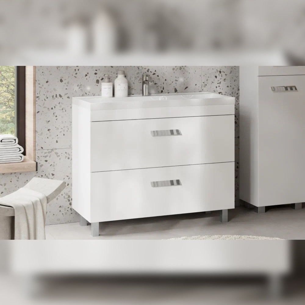 Тумба с раковиной напольная Velvex Orlando tn.ORL.CLA.100.2Y белый матовый, 100 см: 2 выдвижных ящика с механизмом плавного закрывания. Раковина в комплекте.
