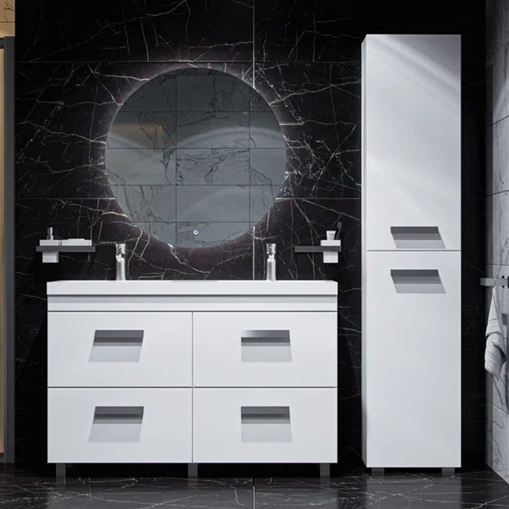 Тумба с раковиной напольная Velvex Orlando tn.ORL.CLA.120.4Y белый матовый, 120 см: 4 выдвижных ящика с механизмом плавного закрывания. Раковина в комплекте.