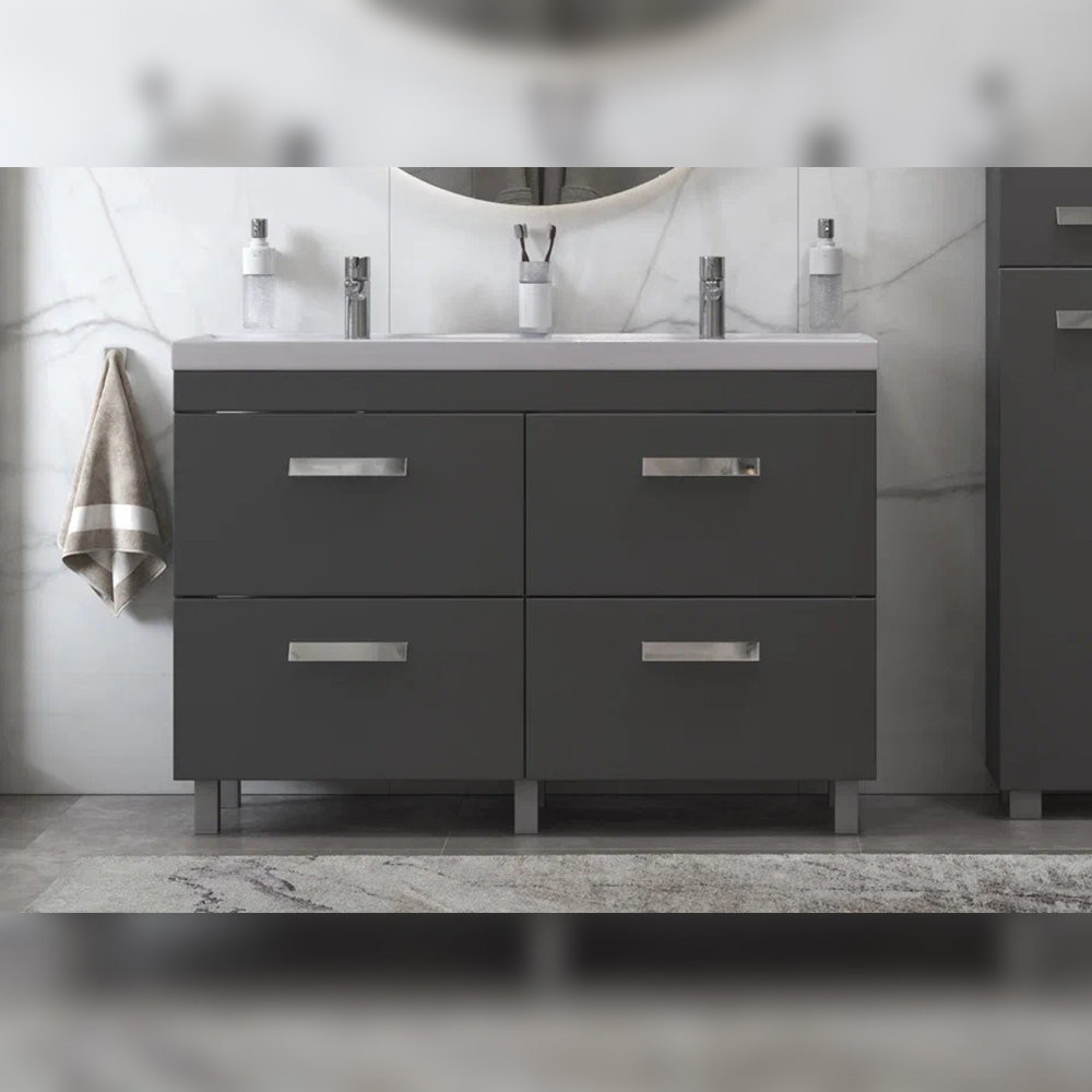 Тумба с раковиной напольная Velvex Orlando tn.ORL.CLA.120.4Y графит, 120 см: 4 выдвижных ящика с механизмом плавного закрывания. Раковина в комплекте.
