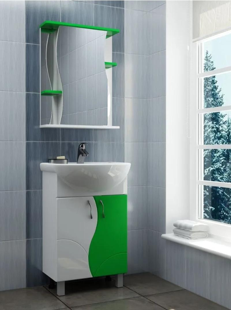 Тумба с раковиной напольная VIGO Alessandro tn.ALE.UYU.55.2D зел, 55 см. Раковина в комплекте. 2 дверцы; 1 полка ЛДСП; опоры квадратные регулируемые. Материал корпуса: влагостойкая ЛДСП Материал фасадов: ЛМДФ Покрытие: пленка ПВХ Дверцы: петли с механизмом плавного закрывания. Крепление к стене не предусмотрено.