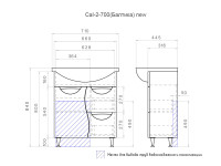 Тумба с раковиной напольная VIGO Callao tn.CAL.BAL.70.1D.2Y, 70 см. Раковина в комплекте. 1 дверца; 2 ящика; 1 полка ЛДСП; ручка металлическая хромированная; опоры конус регулируемые..