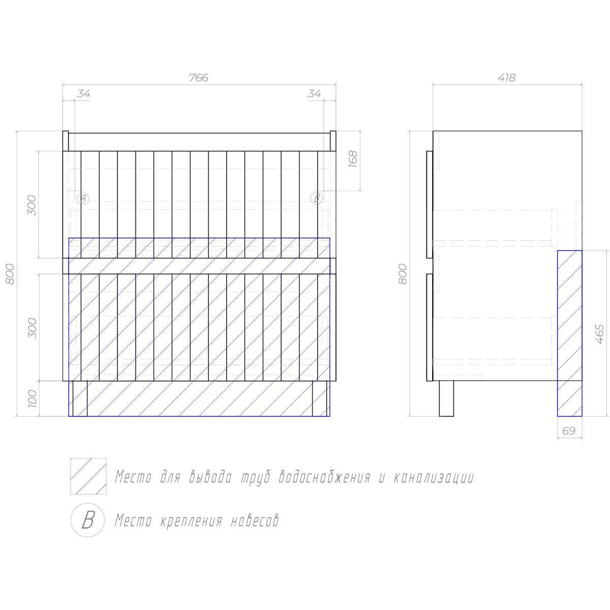 Тумба с раковиной напольная VIGO Finlay tn.FIN.COM.80.2Y, 80 см