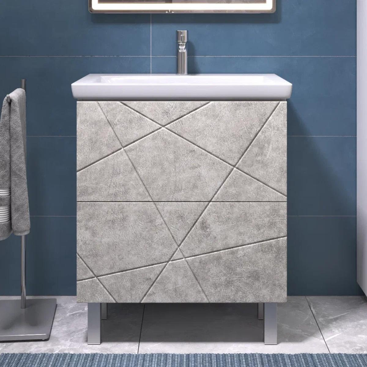Тумба с раковиной напольная VIGO Geometry 016 бетон, 70 см. Раковина в комплекте.