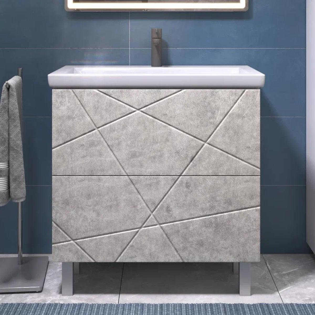 Тумба с раковиной напольная VIGO Geometry 025 бетон, 80 см. Раковина в комплекте.