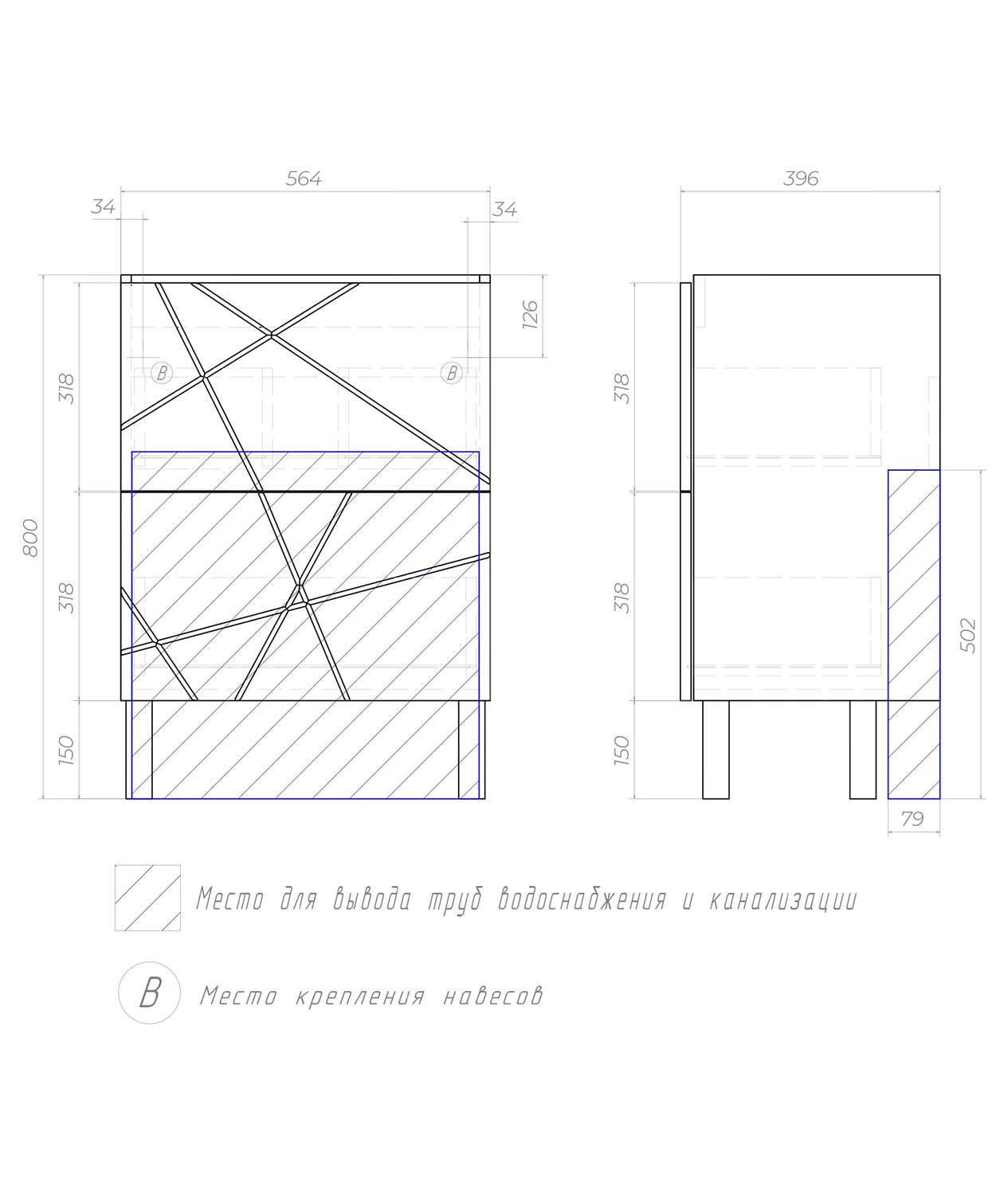 Тумба с раковиной напольная VIGO Geometry tn.bsf.GEO.FOS.60.2Y бетон, 60 см. Раковина в комплекте. 2 ящика; опоры квадратные регулируемые. Специальный сифон Vigo в комплекте. Материл корпуса тумбы: влагостойкая ЛДСП Материал фасадов: МДФ Покрытие: пленка ПВХ Ящики: направляющие полного выдвижения, механизм push-to-open.