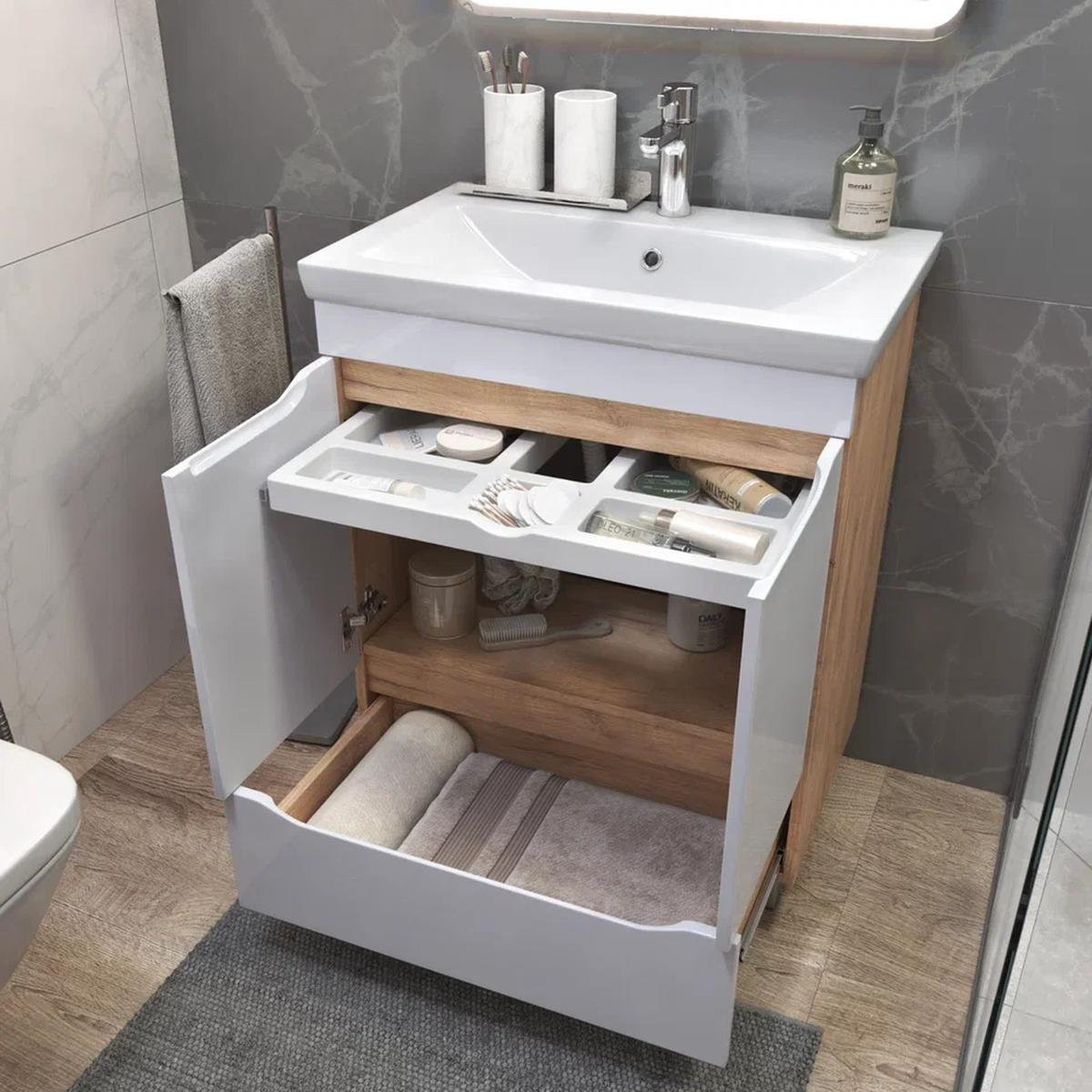 Тумба с раковиной напольная VIGO Grani 285 дуб золотой, 70 см. Раковина в комплекте.