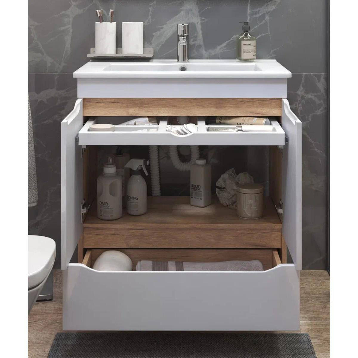 Тумба с раковиной напольная VIGO Grani tn.GRI.OSK.75.2D.1Y дуб золотой, 75 см. Раковина в комплекте.