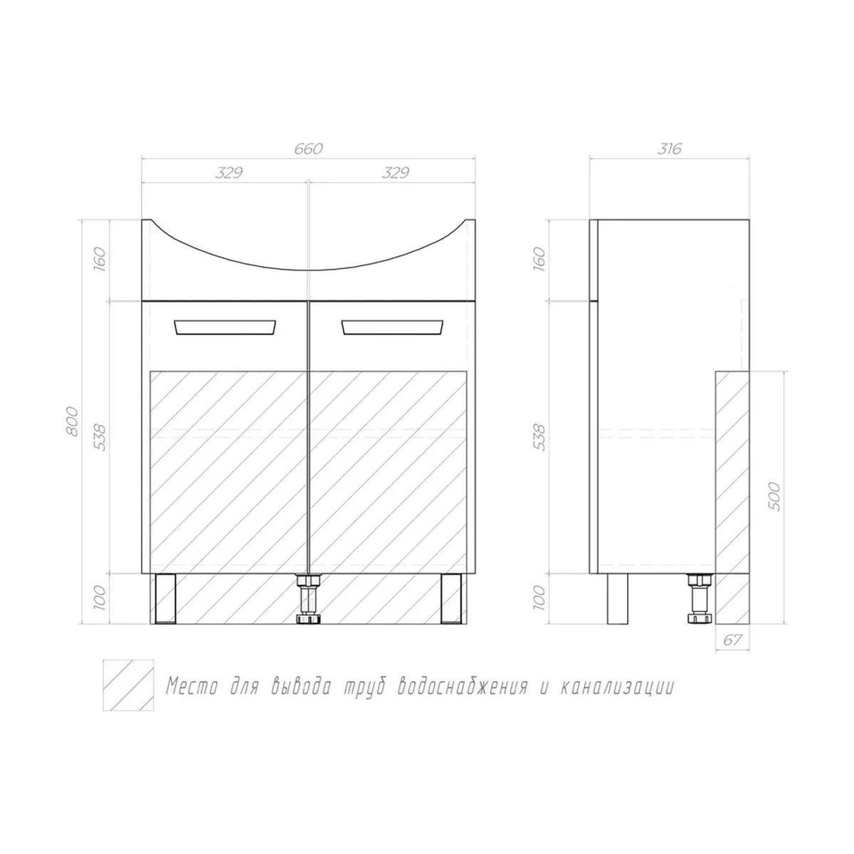Тумба с раковиной напольная VIGO Hoska 232, 70 см. Раковина в комплекте.