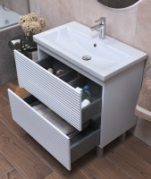 Тумба с раковиной напольная VIGO Otti tn.OTT.COM.70.2Y, 70 см. Раковина в комплекте. Тумбы Otti выделяются оригинальным исполнением фасадов, благодаря горизонтальной фрезеровке. Встроенный механизм push-to-open Hafele (Германия).Удобное открывание легким нажатием на фасад Два варианта размещения: напольное/подвесное.