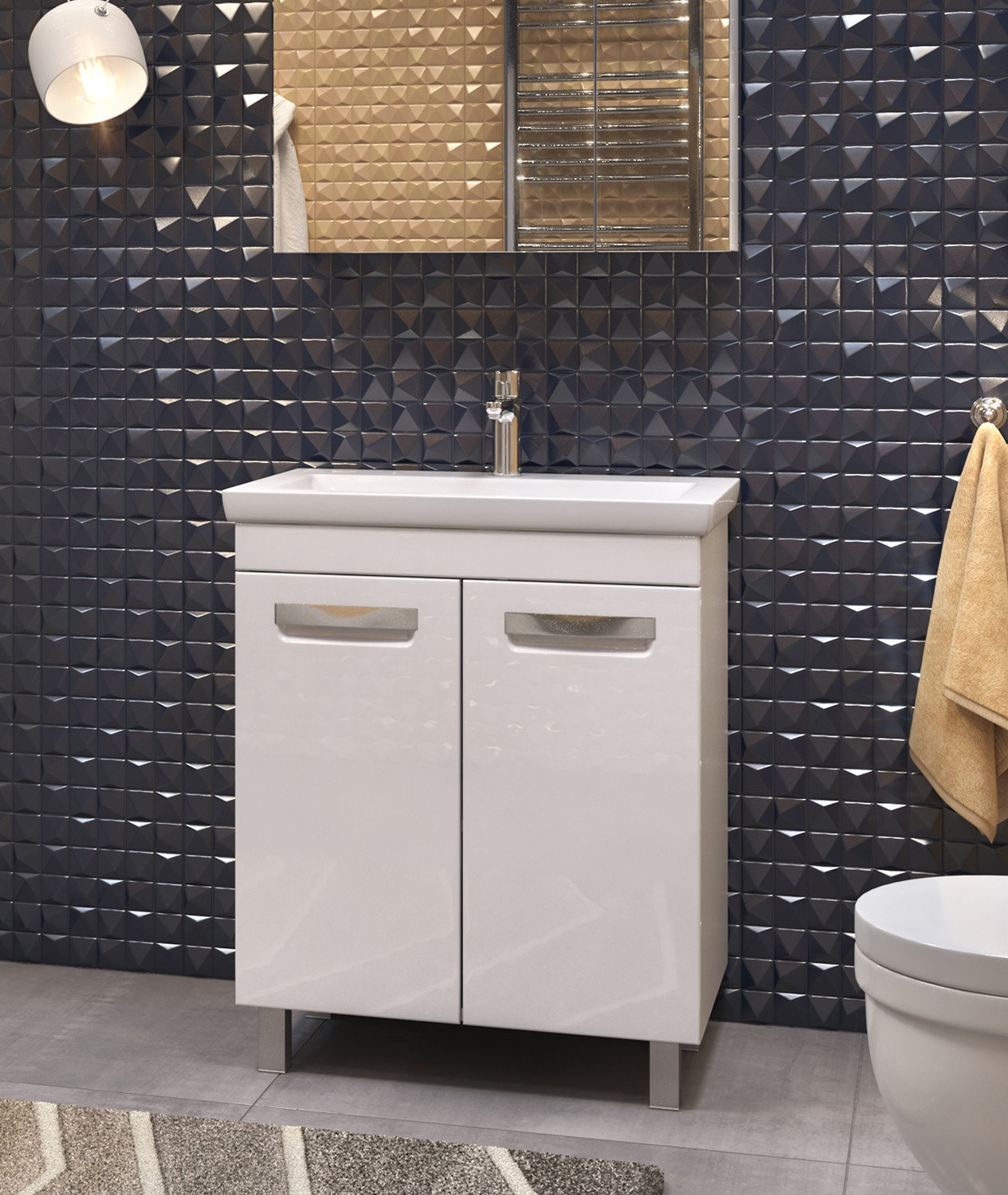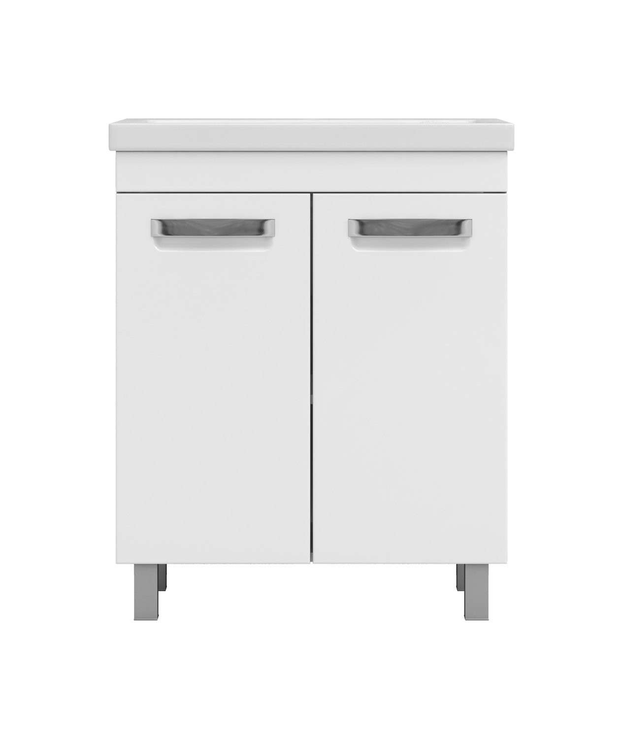 Тумба с раковиной напольная VIGO Plaza tn.PLA.COM.60.2D, 60 см. Раковина в комплекте. 2 дверцы; 1 полка ЛДСП; ручка врезная металлическая хромированная, опоры квадратные регулируемые. Материал корпуса: влагостойкая ЛДСП Материал фасадов: ЛМДФ Покрытие: пленка ПВХ Дверцы: петли с механизмом плавного закрывания Ящики: скрытые направляющие полного выдвижения, механизм мягкого бесшумного самозакрывания. (Hettich,Германия).