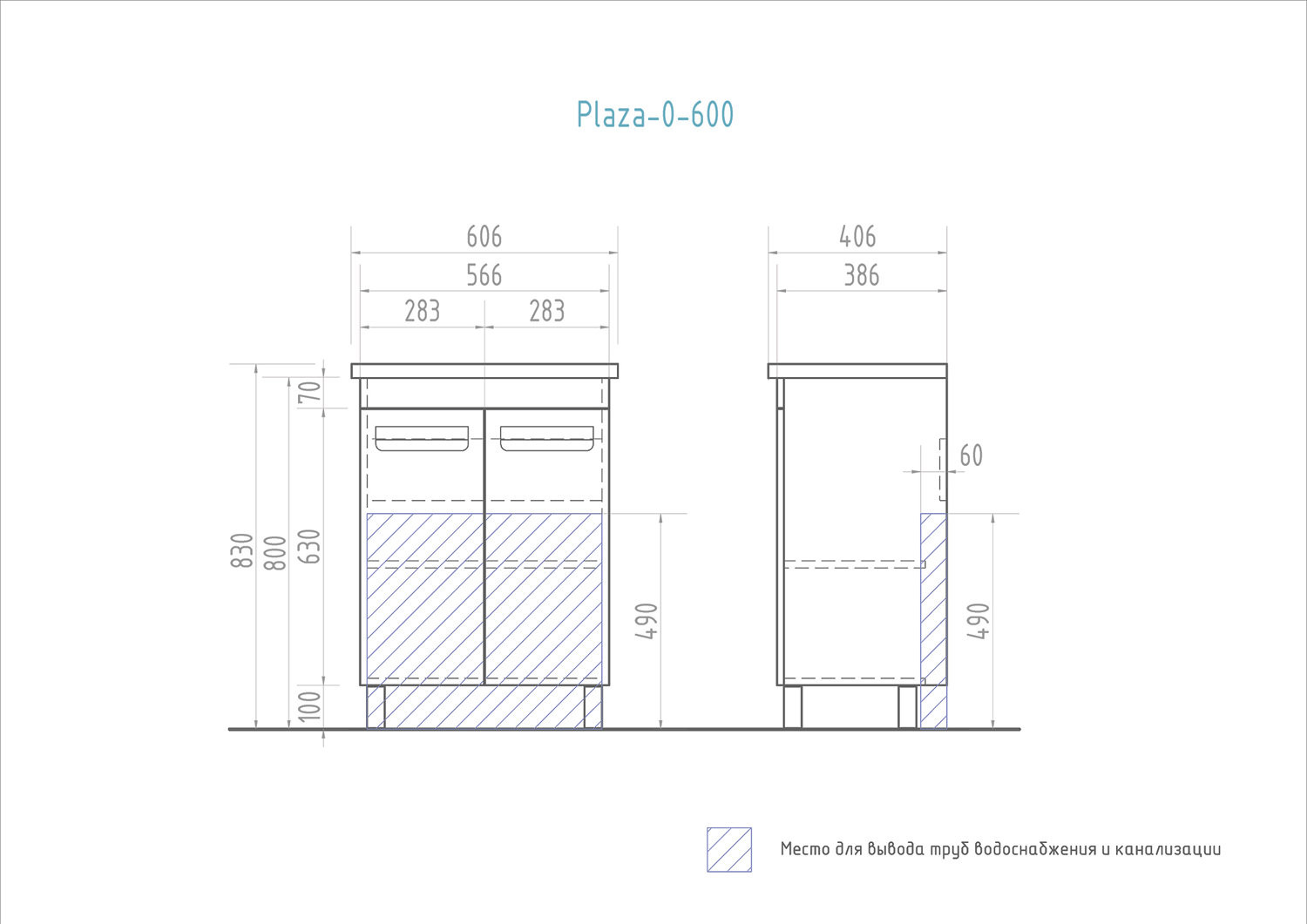 Тумба с раковиной напольная VIGO Plaza tn.PLA.FOS.60.2D, 60 см. Раковина в комплекте. 2 дверцы; 1 полка ЛДСП; ручка врезная металлическая хромированная, опоры квадратные регулируемые. Материал корпуса: влагостойкая ЛДСП Материал фасадов: ЛМДФ Покрытие: пленка ПВХ Дверцы: петли с механизмом плавного закрывания Ящики: скрытые направляющие полного выдвижения, механизм мягкого бесшумного самозакрывания. (Hettich,Германия).
