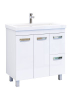 Тумба с раковиной напольная VIGO Plaza tn.PLA.MIR.80.2D.2Y, 80 см. Раковина в комплекте. 2 дверцы; 2 ящика; 1 полка ЛДСП; ручка врезная металлическая хромированная, опоры квадратные регулируемые. Материал корпуса: влагостойкая ЛДСП Материал фасадов: ЛМДФ Покрытие: пленка ПВХ Ящики: скрытые направляющие полного выдвижения, механизм мягкого бесшумного самозакрывания. (Hettich,Германия).