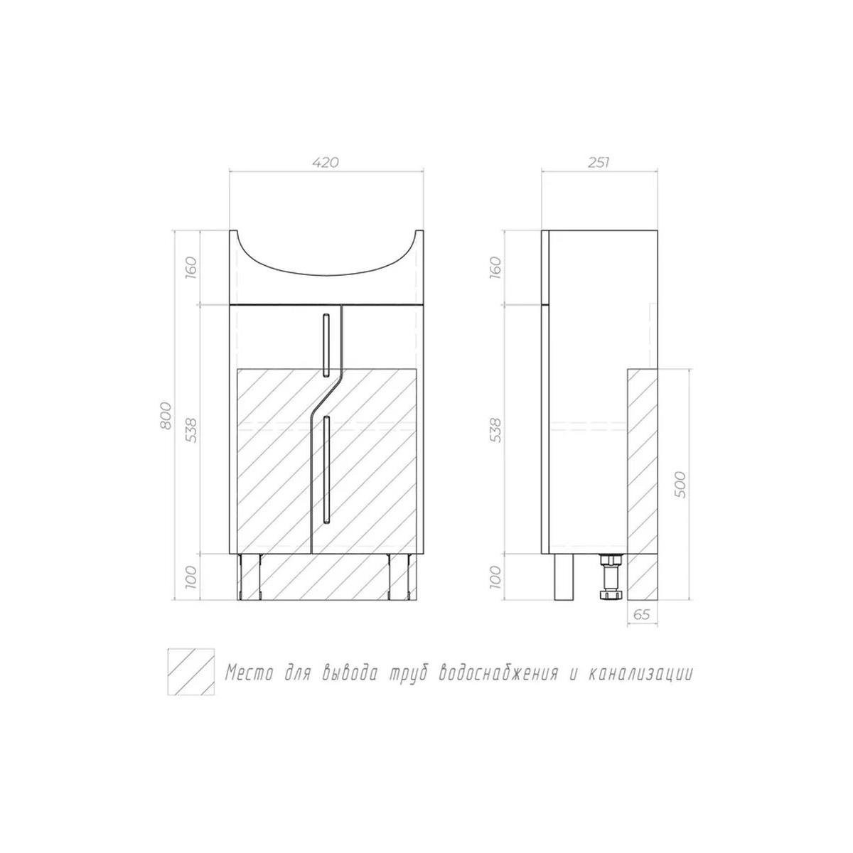 Тумба с раковиной напольная VIGO Turin 223, 45 см