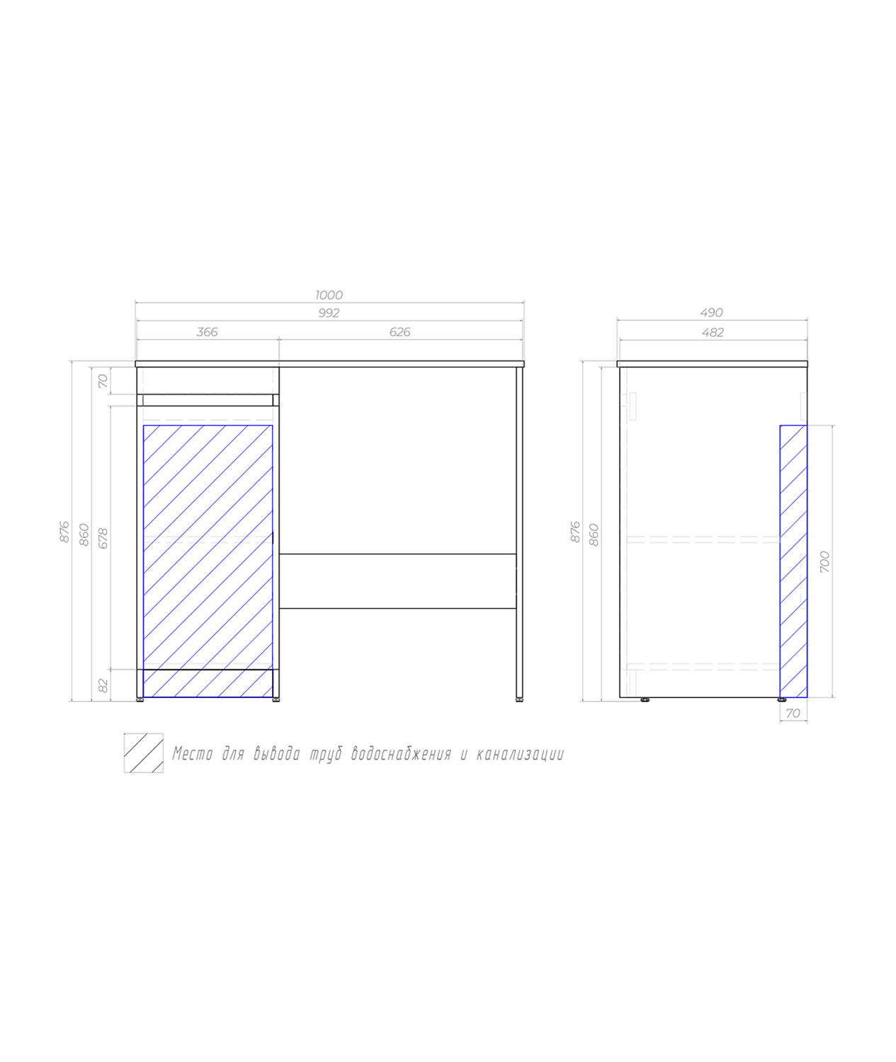 Тумба с раковиной напольная VIGO Urban tn.URB.40.1D+st.URB.100, 100 см