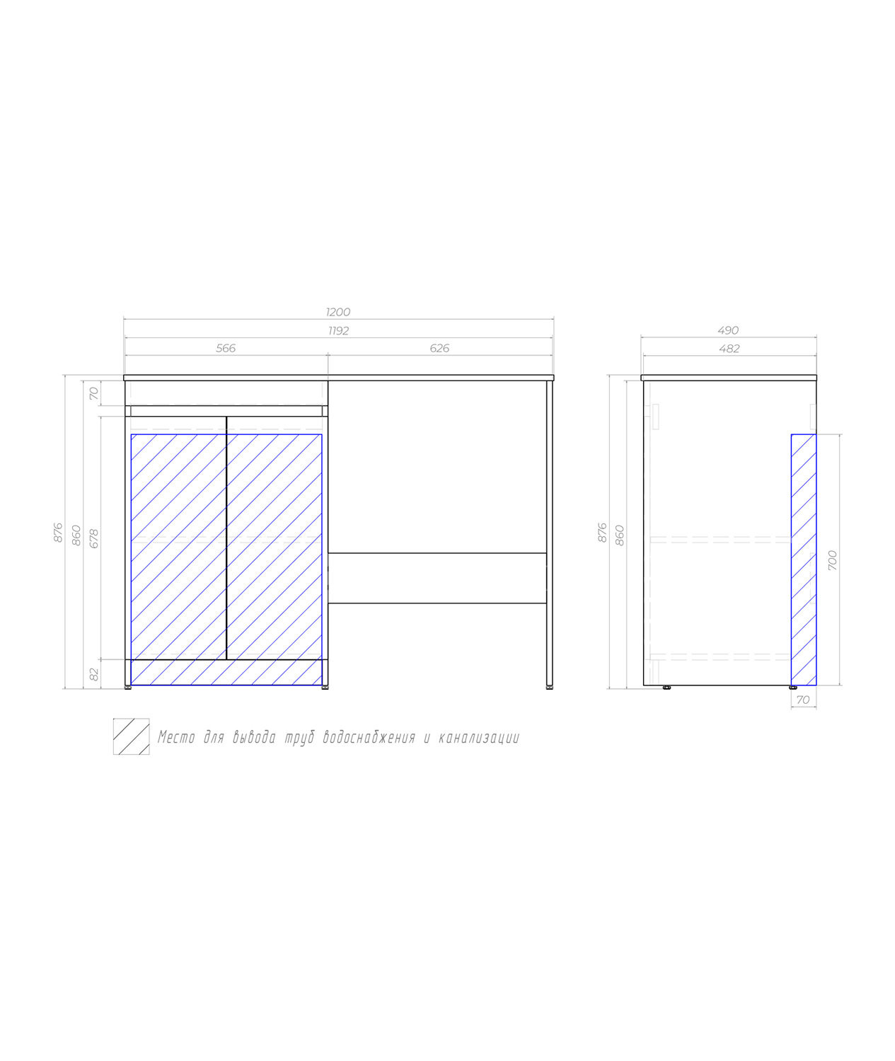 Тумба с раковиной напольная VIGO Urban tn.URB.60.2D+st.URB.120, 120 см. Раковина в комплекте. Специальный сифон Vigo в комплекте. Материал корпуса: влагостойкая ЛДСП Материал фасада: ЛМДФ Покрытие фасада: пленка ПВХ Отсутствие лицевой фурнитуры – интегрированная ручка. .