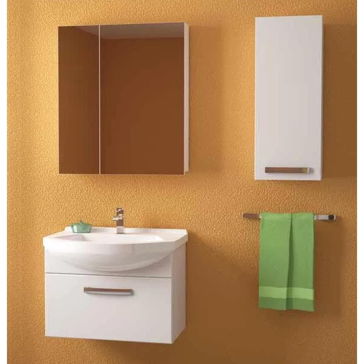 Тумба под раковину подвесная Dreja Alfa 55 см, белый. Фурнитура: Hettich. Компоновка: 1 ящик. Монтаж: подвесной. Раковина арт.: 195452 в комплекте.