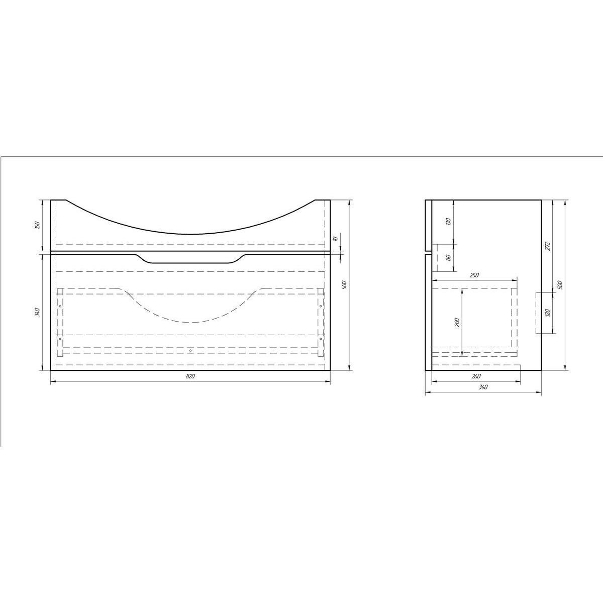 Тумба под раковину подвесная Dreja Laguna 85 см, белый. Фурнитура: Hettich. Компоновка: 1 ящик. Монтаж: подвесной. Раковина арт.: 191676 в комплекте.