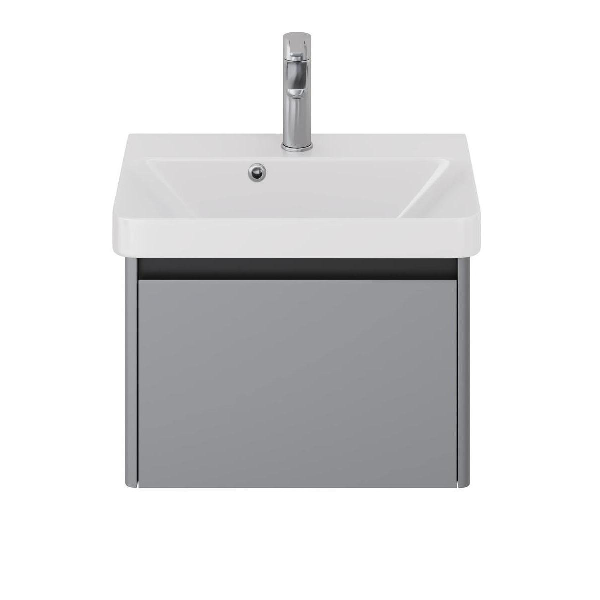 Тумба под раковину подвесная Dreja Luxury 55 см, серый базальт. Фурнитура: Boyard. Компоновка: 1 ящик. Монтаж: подвесной. Раковина арт.: 11055-KL в комплекте.
